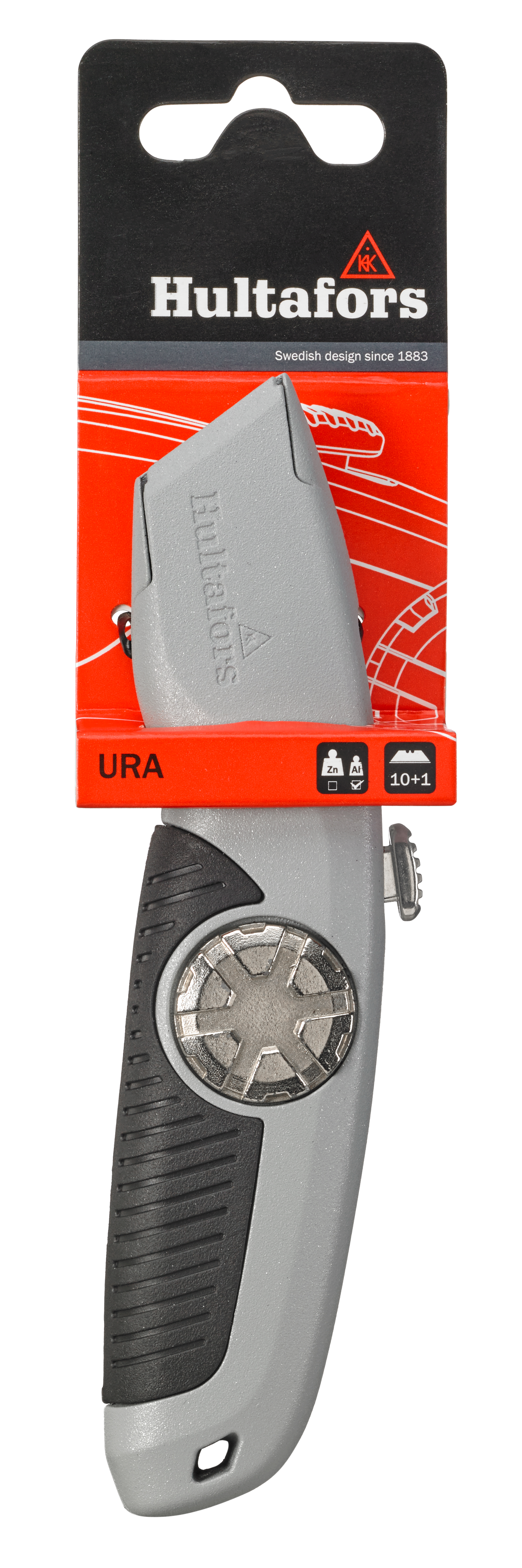 Lett og effektiv universalkniv med godt grep og ergonomisk design for sikkerhet, komfort og kontroll. Det praktiske skruhjulet gjør at du enkelt kan skifte knivblad uten bruk av verktøy. 10 stk ekstra knivblad inkludert i knivens håndtak.
